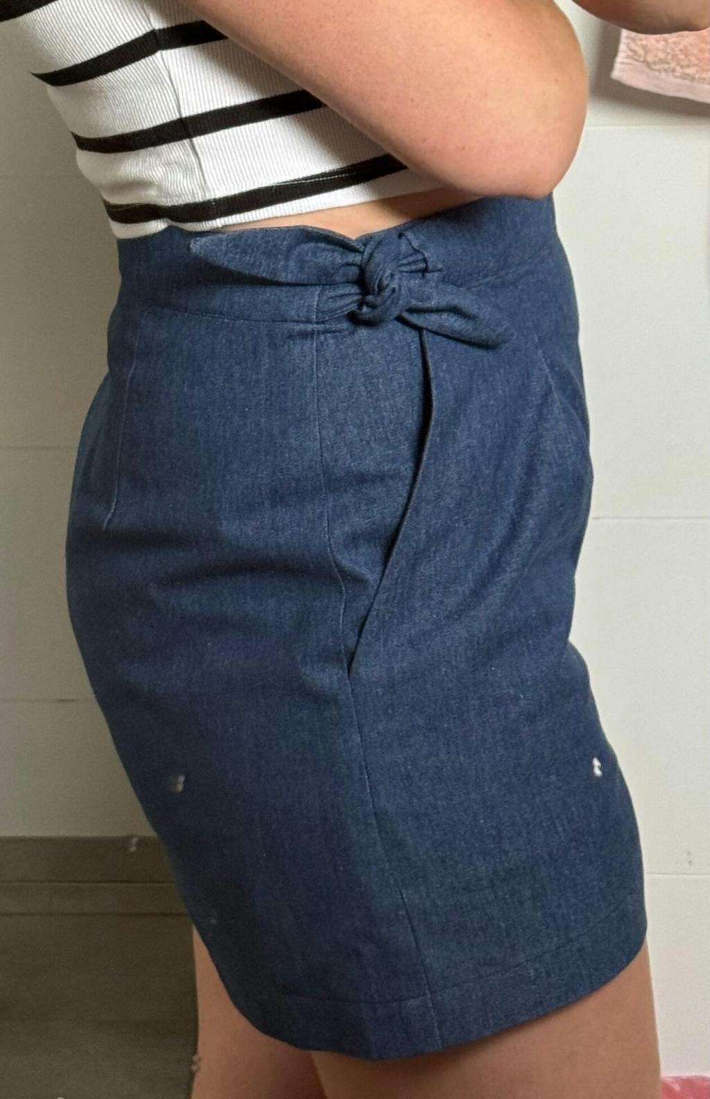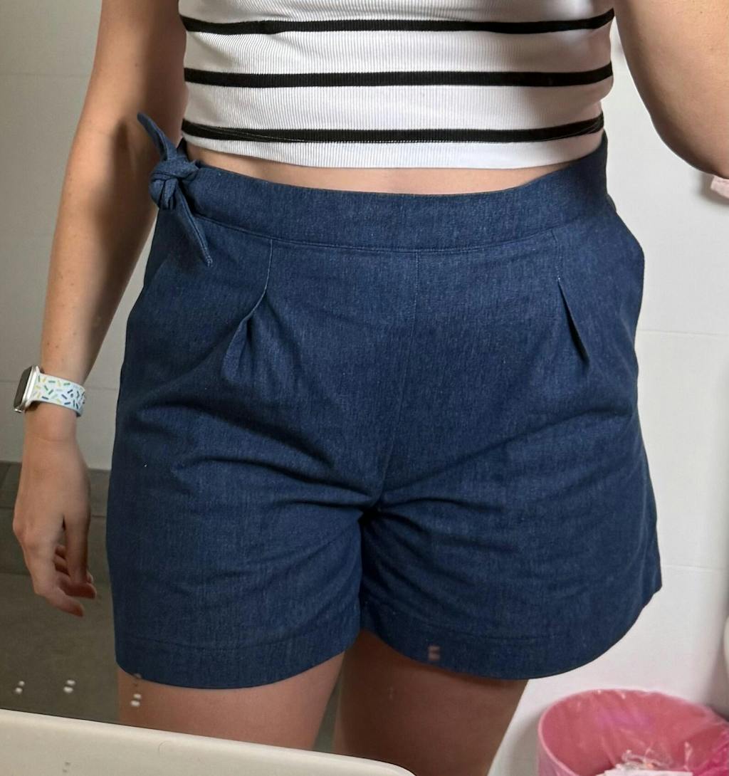 Wide leg cropped pants or shorts with unique crossover closure at the side seam. Pattern sits on the natural waist and features hidden closure at the left pocket , release tucks at the front, darts at the back, slash pockets, two waistband options and two lengths.