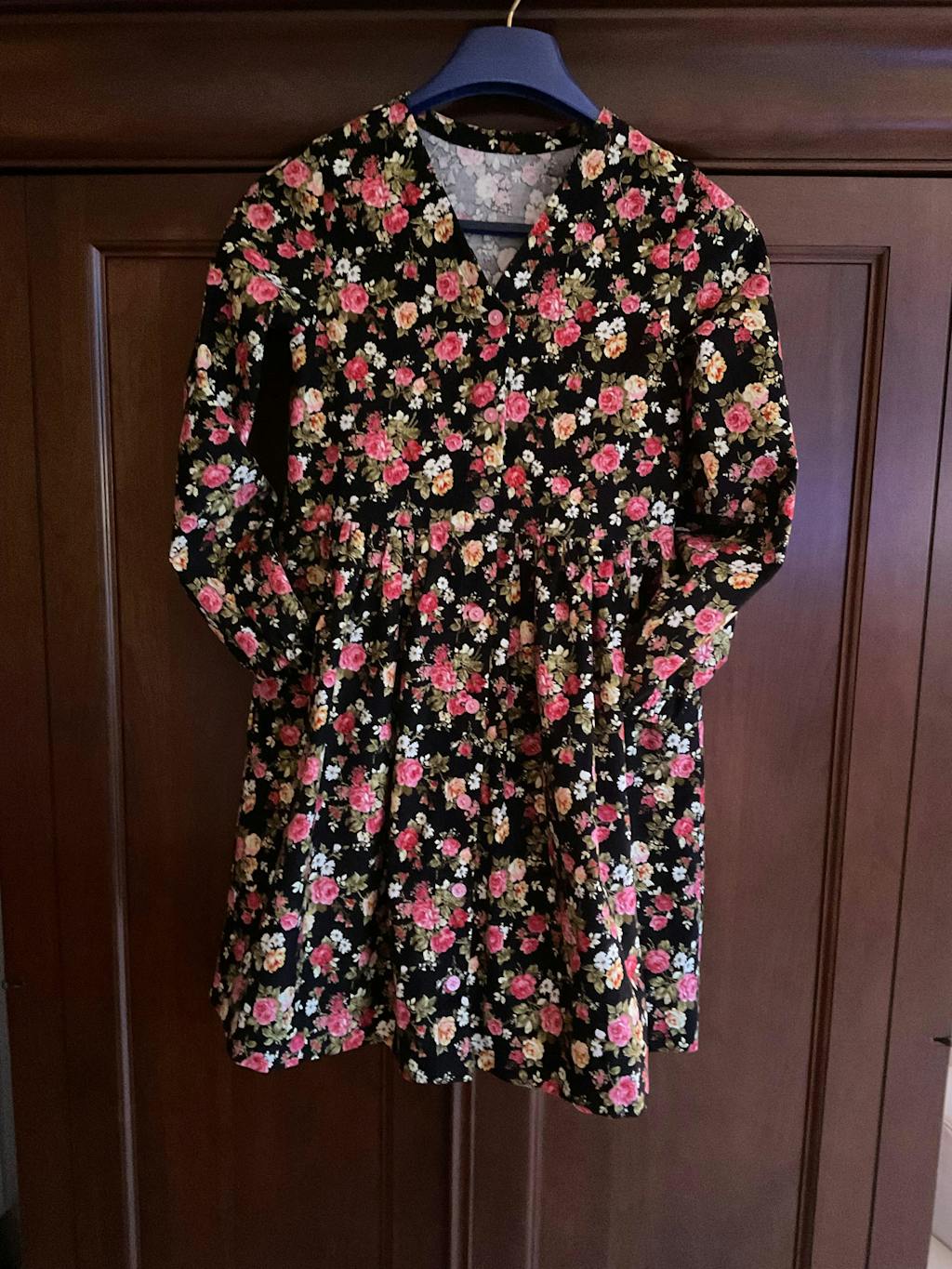 Easily adaptable modern shirtdress with a gathered skirt, button down front and relaxed fit. Pattern features V neck, multiple sleeve options, large inseam pockets and ties at the back to allow it to be worn in a fitted or loose style.