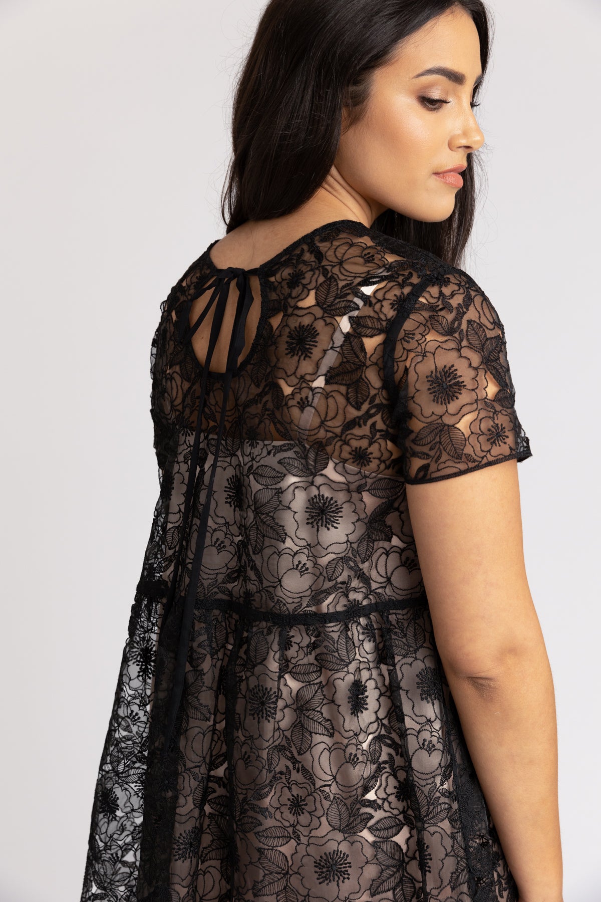 Reversible loose fit blouse and gathered waist dress. Pattern features keyhole cut out, ties, a peter pan collar and three sleeve lengths. Can be worn with keyhole in the front or back.